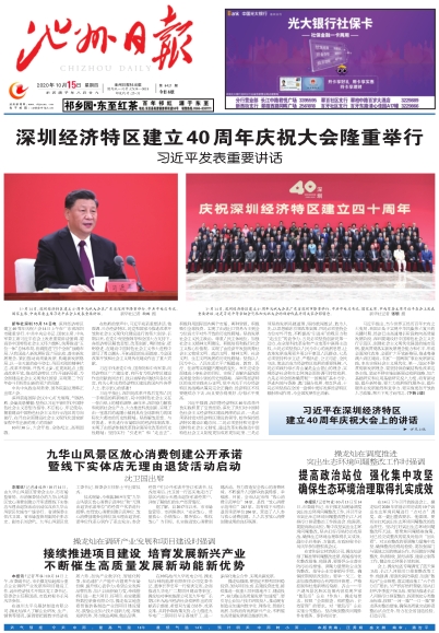 10月14日,深圳经济特区建立40周年庆祝大会在广东省深圳市隆重举行。