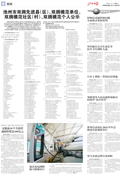 池州市双拥先进县(区)、双拥模范单位、双拥模范社区(村)、双拥模范个人公示