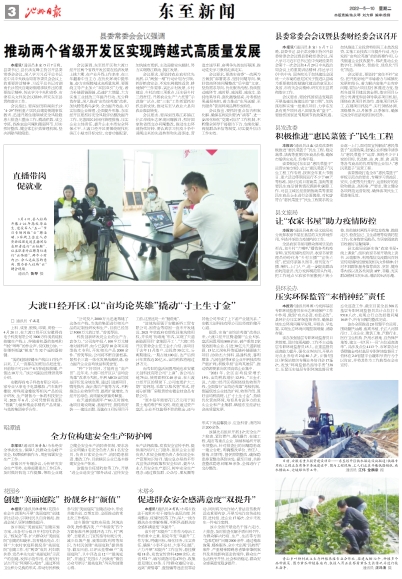 会议强调,东至经开区和大渡口经开区两个省级开发区要在经济发展上挑大梁、在产业升级上作表率、在三年翻番中当主力、在优化环境中提形象,奋力实现跨越式高质量发展。要围绕主导产业加大“双招双引”力度,着力补链固链强链,迅速扩大增量,大力实施工业技改三年提升行动,充分释放存量,深入推进“亩均论英雄”改革,加快腾笼换鸟步伐,全力提升效益,切实加强企业管理,全面提升形象。东至经开区要抓好安全风险评估整改提升工作,完善园区封闭化管理措施,压实企业主体责任,提升企业本质安全环保水平。大渡口经开区要围绕现代化滨江小城市目标定位,完善功能配套,加快城市更新,主动迎接安庆辐射,努力实现跨江联动、拥江发展。