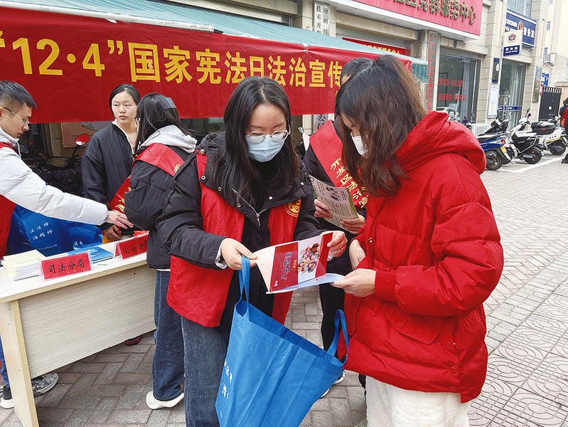 12月4日,经开区组织开展国家宪法日法治宣传教育活动,普法志愿者通过现场咨询、悬挂横幅、进企业宣讲等形式,向辖区居民、企业经营管理者和企业员工宣传宪法及与生产、生活密切相关的法律法规,营造尊法学法守法用法的浓厚氛围。