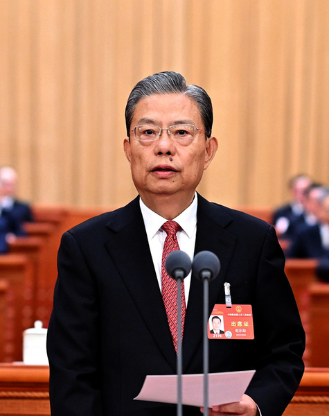 3月5日,第十四届全国人民代表大会第二次会议在北京人民大会堂开幕。赵乐际主持开幕会。新华社记者 谢环驰 摄