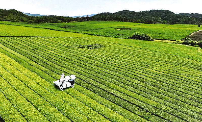 东至县龙泉镇万亩茶园全面启用机器采茶