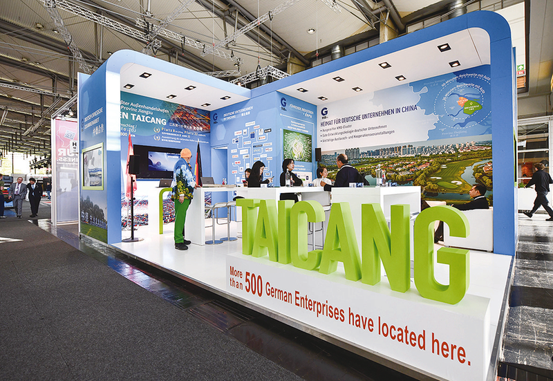 这是4月22日在德国汉诺威工博会上拍摄的江苏太仓展区。