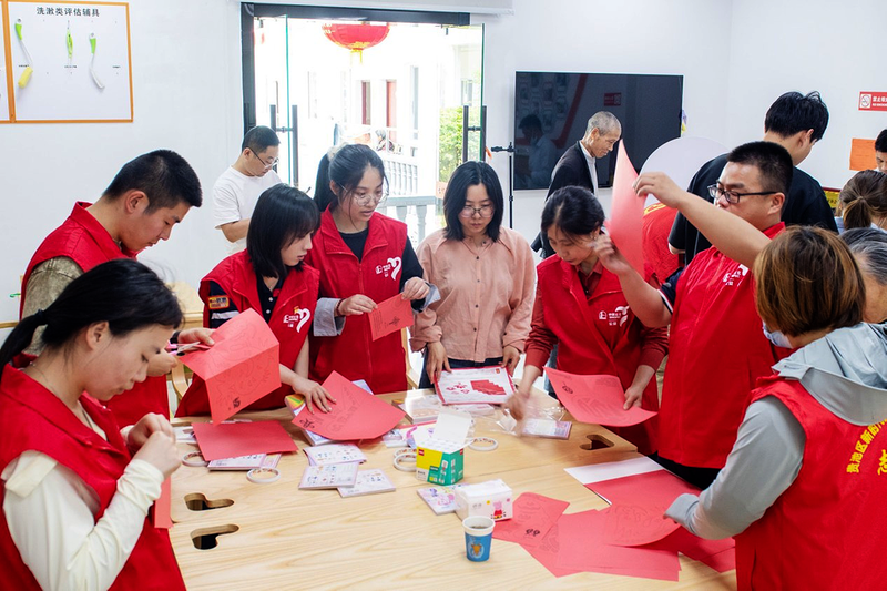 活动中,志愿者教老人手工剪纸、帮老人打扫卫生、陪老人做健身操等,让老人们感受到社会大家庭的关爱和温暖。