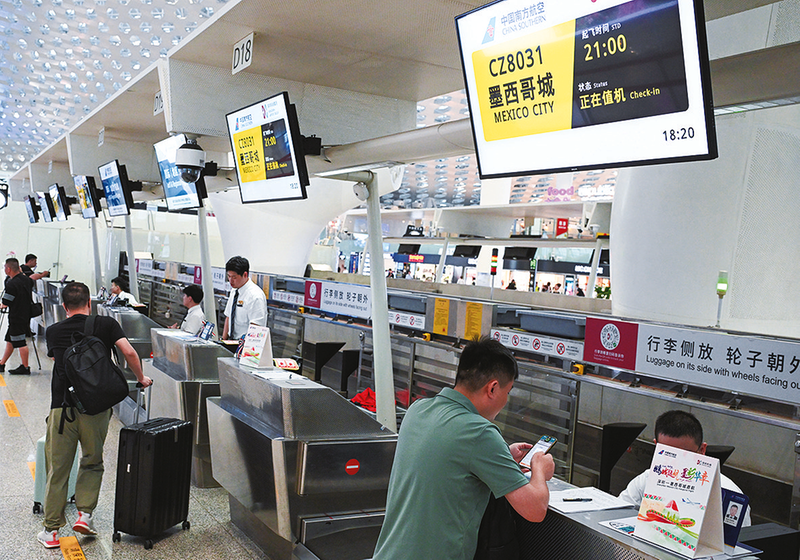 5月11日,在深圳宝安国际机场,搭乘深圳—墨西哥城直飞航线的乘客办理值机。