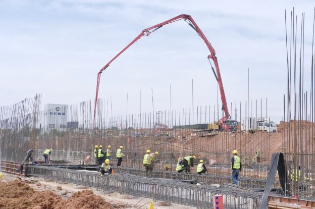 自今年1月份施工以来,频繁降雨给产业园项目建设带来考验。为保证施工进度,项目团队保资源、保投入、保效率,设置高杆灯进行24小时作业,保证“人停机不停”,以“小雨大干、大雨不停干”的作业态度,克服诸多不利因素,全力推进项目建设。