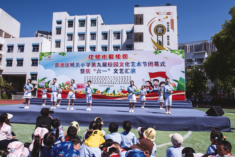 5月29日,贵池区城关小学在学校操场举办第九届校园文化艺术节闭幕式暨庆“六一”文艺汇演活动。 通讯员 高满芳 摄