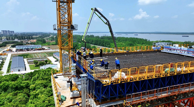 池州长江公铁大桥首片铁路现浇梁混凝土浇筑完成