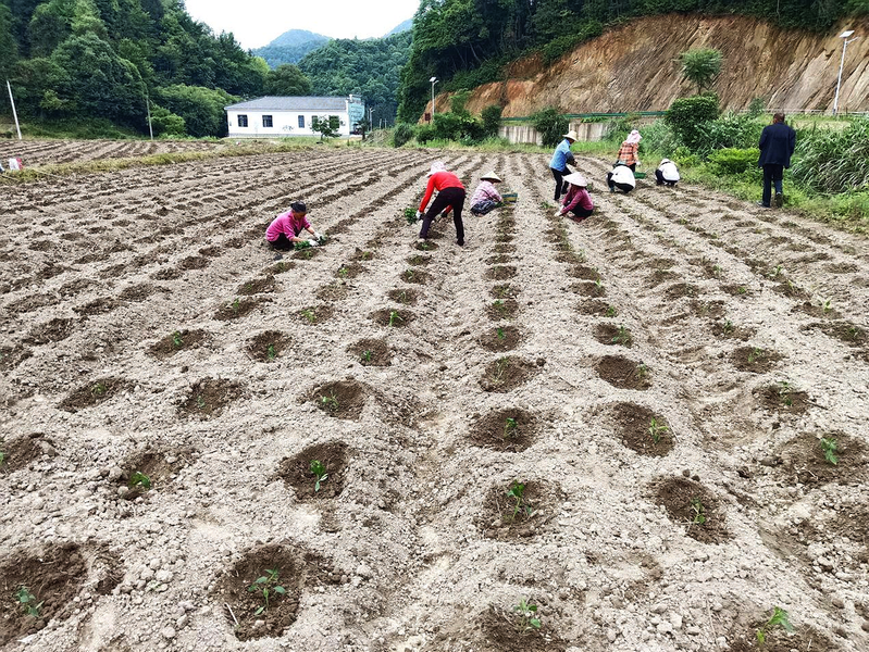 翻耕、整地、栽植、浇水……日前,在东至县木塔乡祝山村的辣椒种植基地,10余名村民正忙着复垦耕地栽种辣椒秧苗。