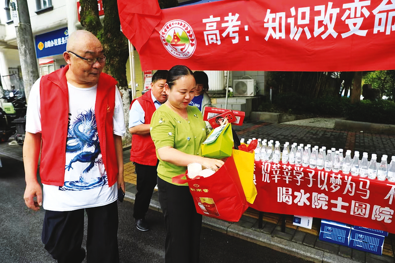 石台县公益协会准备充足的矿泉水和爱心送考车等,免费提供给有需要的考生和陪考家长。