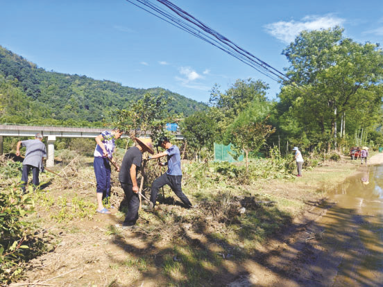 据悉,东至县防汛形势仍然严峻,崩塌、滑坡等地质灾害风险依然很高,全县防汛三级应急响应尚未解除,各地区在加强巡堤查险、及时排险的同时,陆续投入到汛后恢复工作中。这几日,尧渡镇组织党员干部下沉一线,冒高温、战酷暑,结合路段清淤排水、倒伏树木清理、设施损坏修复、消杀等工作,全面开展农村人居环境整治,有效满足群众生产生活需求,以最快的速度、最实的举措恢复生产生活秩序,努力把灾害造成的损失减少到最低程度。