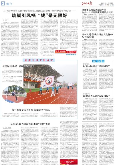 贵池区棠溪镇石门高村是历史上九华山朝圣和池州通往古徽州的重要节点。2018年石门高村被列入中国历史文化名村。近年来,石门高村加强高氏宗祠、高与清墓等历史文化资源保护,依托村域内自然人文资源,引进旅游企业,共同发展“以村养村”的乡村旅游产业。九华山风景区九华乡老田吴村是安徽省第四批历史文化名村,村内拥有众多宗祠、门坊、古民居等明清时期的历史遗存。村落核心保护范围内10处古民居建成年代久远,在市住建部门与检察部门的联合推动下,已逐步开展保护修缮工作。
