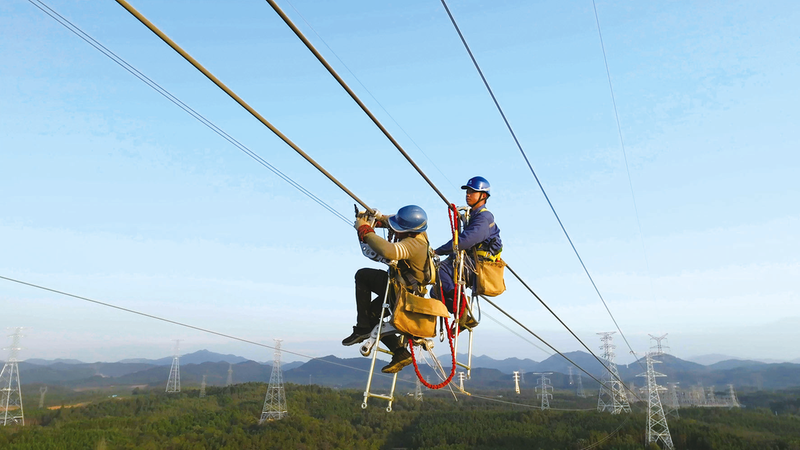 国能神皖池州发电有限公司九华发电厂二期220千伏送出线路工程新建标塔129基,新建线路长度47.4千米,预计年底全线贯通。目前,池州供电公司正在紧张有序地开展导线展放作业。 记者 李建军 通讯员 贾万田 摄
