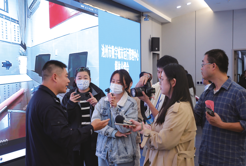 图为11月9日,采访团在市城市运行管理中心进行现场采访。