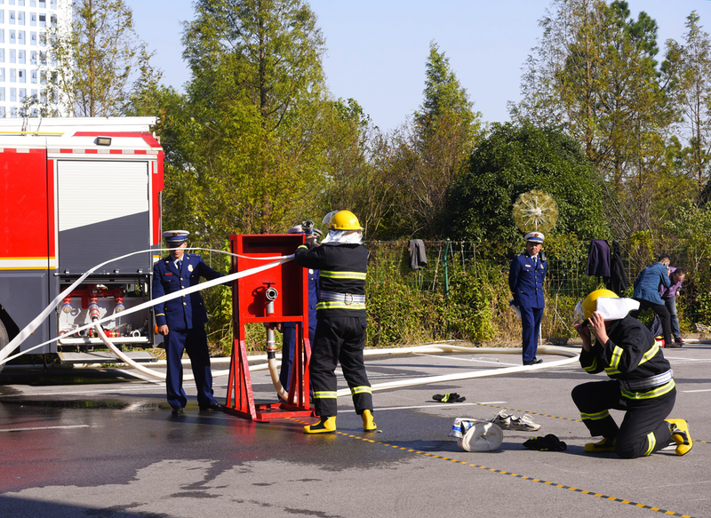 11月7日,贵池区“119”消防宣传月活动启动仪式在主城区百荷公园举行。今年消防宣传月的主题是“全民消防,生命至上”。活动现场,消防员通过提供消防安全咨询、演示消防器材使用方法等方式,向现场市民讲解普及消防知识。图为消防员在微型消防站演示连接水管。