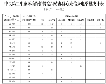 中央第二生态环境保护督察组 向安徽省转办第二十一批信访件