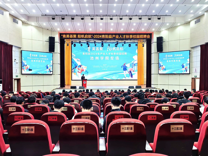 为进一步促进政校企深度合作,引导更多高校毕业生来青阳就业创业,近日,青阳县2024年产业人才秋季校园招聘活动在池州学院成功举行。图为县人才政策推介和安徽宝镁轻合金有限公司企业推介现场。