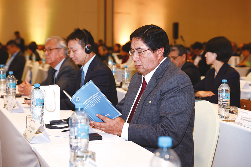11月8日,在秘鲁首都利马,嘉宾翻阅智库报告。
