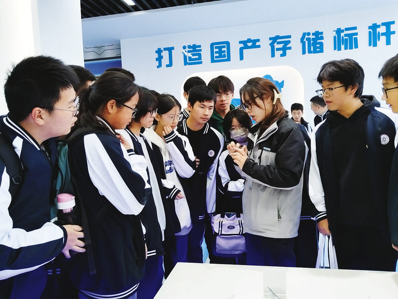 在华讯科技展览厅,池州八中英才班的学子们详细了解公司的芯片等高新科技产品。