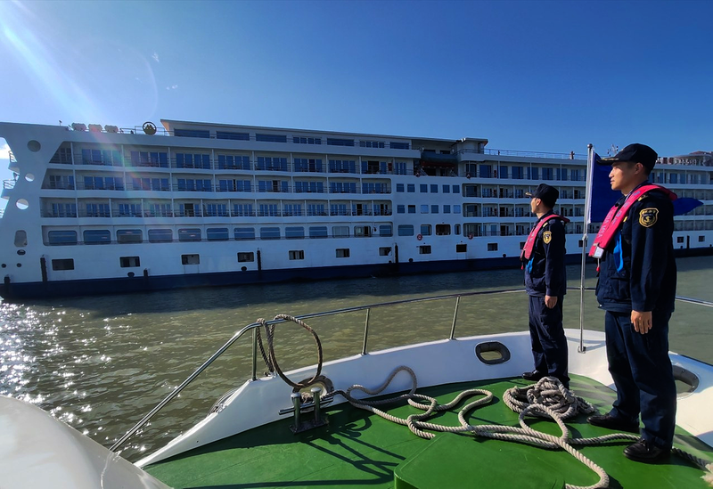池州海事保障枯水期大型游轮顺利靠泊畅行皖江
