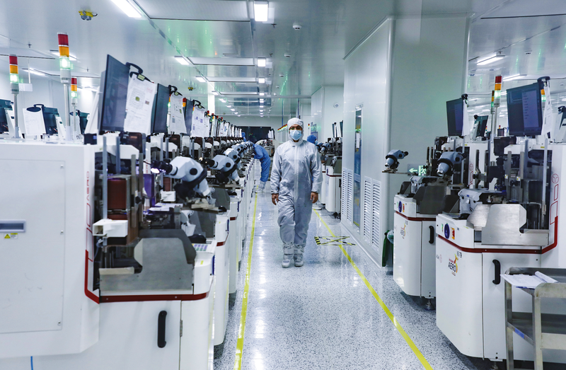 近日,位于池州高新区的池州巨成电子科技有限公司生产车间内技术人员正在加紧赶订单。该公司是一家国家高新技术企业,今年持续推进设备换芯、机器换人、生产换线,推动企业从“制造”迈向“智造”,不断提高核心竞争力。图为公司封装测试数字化生产车间。