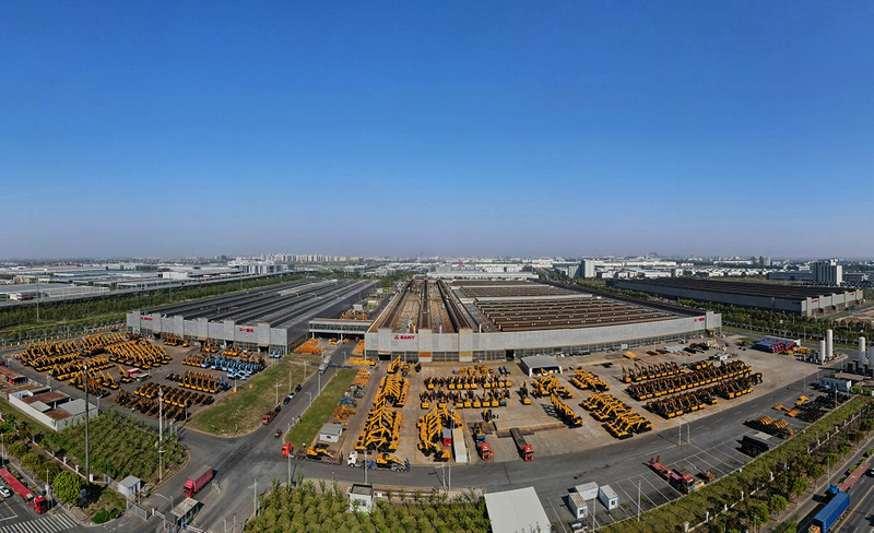 空中俯瞰上海三一重机股份有限公司外景(无人机全景照片 4月15日摄)。