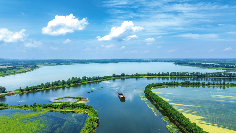 盛夏时节,青阳县青通河水天一色,岸绿景美。蜿蜒的河流与行驶的船只、田园、远山构成一幅迷人的生态山水画卷。 通讯员 何清 摄