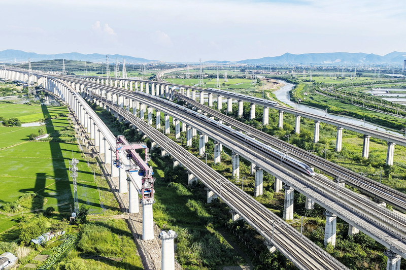 时下,中铁四局巢马城际铁路架梁施工现场一派繁忙,施工人员奋战在建设一线,确保重点铁路工程建设稳步推进。巢马城际铁路是国家“八纵八横”高铁网沪汉蓉快速通道合肥至上海间的重要组成部分,设计时速350公里。