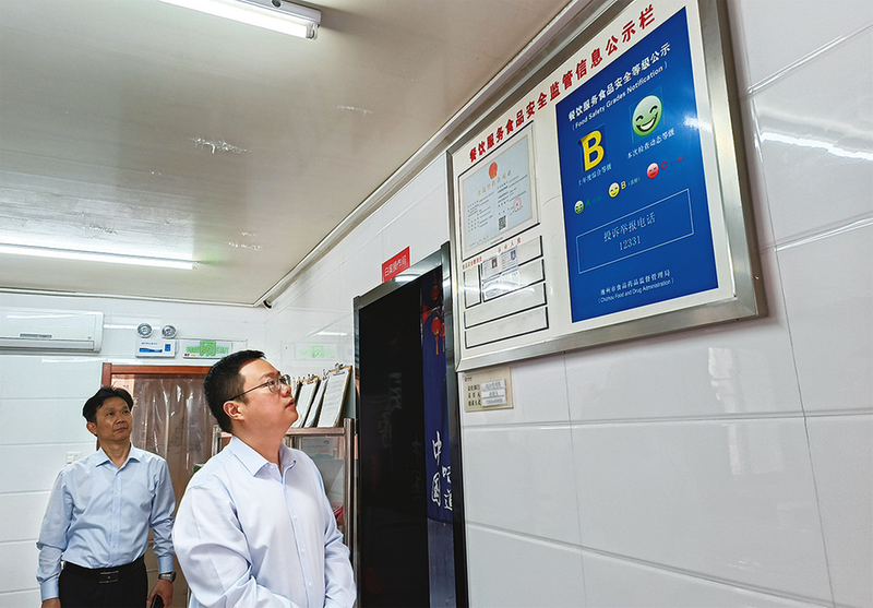 分行主要负责人检查食堂消防安全重点部位。