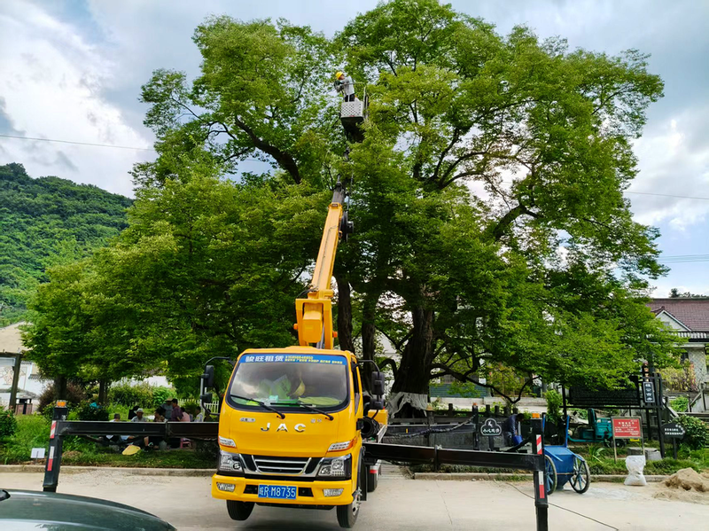 位于酉华镇二酉村的檀公古树是“中国最美古树”之一。日前,该村请来古树保护专业团队,检测树体、修剪枯枝、驱虫治害、安装仿生支架,并通过传感器对古树进行实时监测。