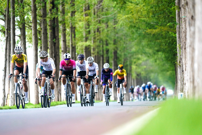 9月14日,参赛选手在比赛中骑行。