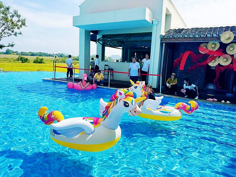 位于张溪镇联盟村的升金湖科考研学基地同样是黄金周热门目的地,多元体验项目持续火热。该基地占地200余亩,可开展自然观察、农耕体验等研学活动。在候鸟科普中心内,参观的游客有序驻足、聆听讲解;在气模许愿区和泳池打造的创意打卡点前,游客排队等待拍照;连廊上,月饼、非遗糖人等美食摊位琳琅满目。