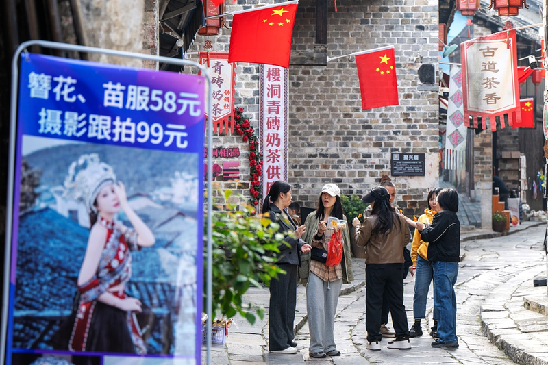 图为10月29日,游客在羊楼洞古街参观游览。 新华社记者 杜子璇 摄