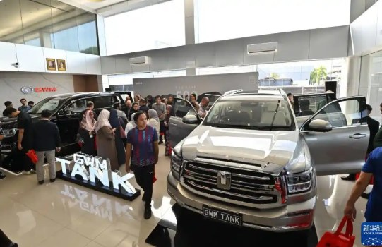 在文莱斯里巴加湾市,人们参观长城汽车新款车型。 新华社发