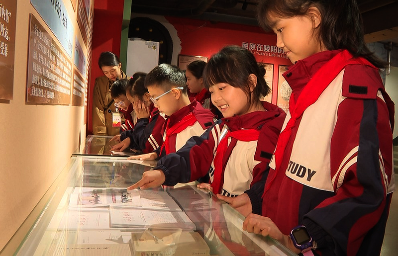 作为县域文旅融合发展的标杆区域,陵阳镇凭借丰富的历史文化资源与特色研学项目,成为周边学校开展实践教育的热门目的地。图为来自市区的小学生走进青阳屈原文化园,开启一场融合知识学习与趣味体验的研学之旅。