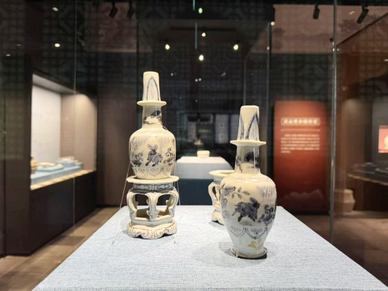 2000年,这对供瓶曾随省文物局远赴韩国参展,一经亮相,便引发韩国民众的热烈追捧。“金乔觉是中韩佛教交流史上最具象征意义的‘桥梁’之一。供瓶发现于九华山麓,造型精美,佛韵盎然,遂被选送韩国展出,以器为媒,再续两国文化前缘。”杨丹表示,未来将以数字技术赋能,让元青花兔纹带座供瓶焕发新的魅力。