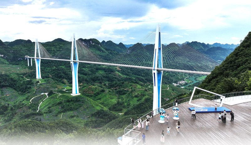 7月10日,游客在贵州省平塘县“天空之桥”服务区观光(无人机照片)。 新华社记者 杨文斌 摄