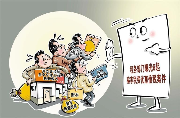 内外两套账、利用员工个人账户交叉收款、开立并控制多个个体工商户拆分收入……近日,税务部门集中曝光了6起骗享税费优惠偷税案件,旨在提醒经营主体税费政策惠企纾困的初衷,切不可因小失大而违法受罚。近年来国家出台系列税费优惠政策,帮助小微企业和个体工商户降低经营成本,激发活力信心。为确保政策精准实施且有效落地,相关部门应持续推进“以数治税”税收征管体系建设,依托大数据技术构建风险预警模型,深化跨部门数据共享与业务协同,实现对涉税违法行为的精准识别和及时干预。企业须牢固树立依法纳税意识,将合规经营理念深度融入企业管理全过程。此外,社会各界应加强税收政策宣传解读,共同营造诚信纳税的良好氛围。