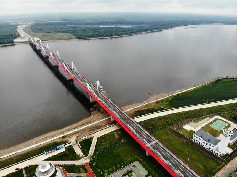 在大桥施工建设过程中,为防止对黑龙江水质造成污染,大桥上积水通过管道排到地面的净水池,净化达标后再排放。严格治理、联合监测、共同保护,近年来两国构建一系列跨境河流联合保护机制,有效改善河流生态环境,为国际河流治理树立典范。