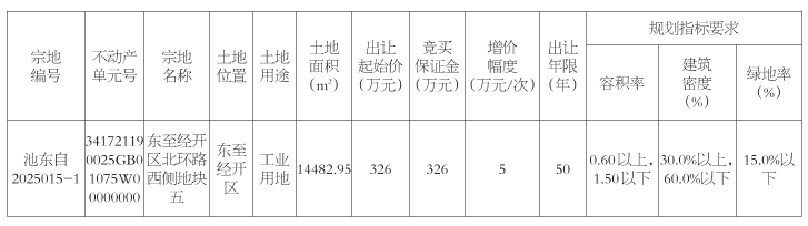 经东至县人民政府批准,东至县自然资源和规划局决定以挂牌方式出让东至经开区北环路西侧地块五国有建设用地使用权。现将有关事项公告如下: