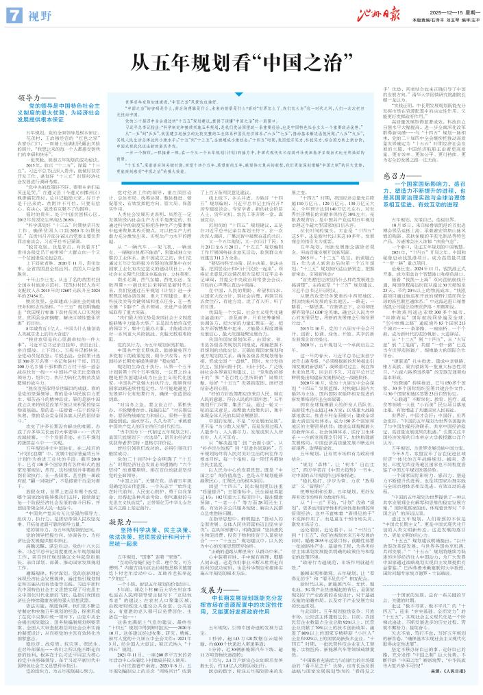 从五年规划看“中国之治”