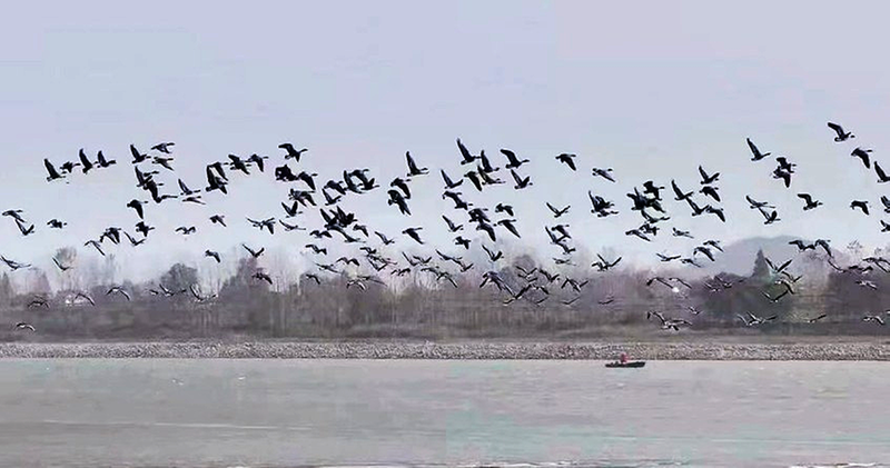 日前,笔者跟随长江华阳航道处工作人员开展生态巡航,登上有着“长江食堂”之称的东流水道天心洲老虎滩生态固滩区,沙洲上翻飞的“鸟浪”与江中“冒尖”的江豚,绘成一幅长江生态蝶变带来的壮美图景。
