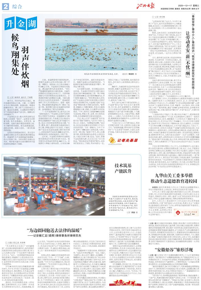 如今,每年近10万只候鸟的到来,让升金湖“候鸟天堂”的生态名片愈发响亮。冬日里,来升金湖观候鸟、赏湖景成为不少游客的出行选择。霞光浸染湖面,粼粼波光与游弋候鸟相映成趣,小天鹅舒展翅膀掠过水面,大雁在草滩上集群觅食……这幅人与自然和谐共生的美景,频频刷屏各类媒体平台,让更多人领略到升金湖的生态魅力。