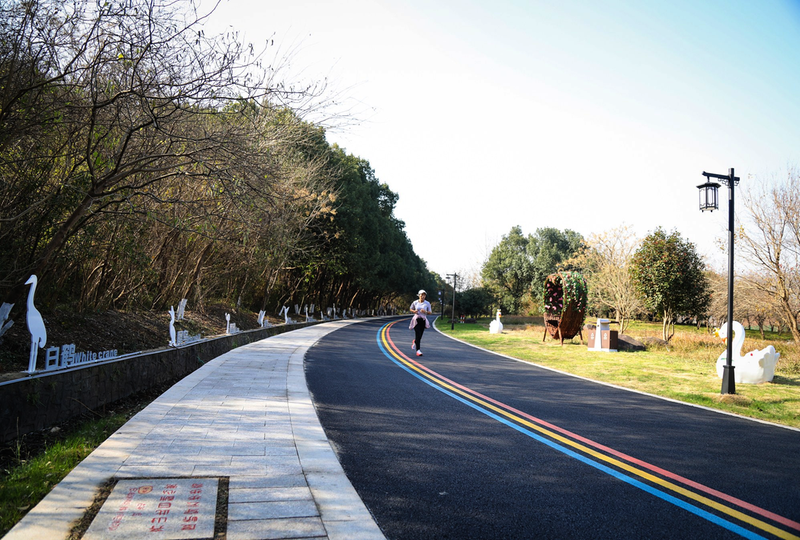 图为市民在崭新的观光步道上慢跑。