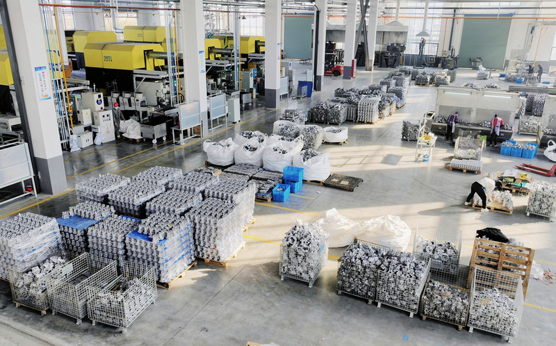 安徽欣天成科技有限公司自今年10月份投产以来,已与长三角地区多家上市企业建立稳定合作关系,目前每月可生产一体冲压成型新能源汽车零部件300余吨,明年将投入更多生产设备,预计每月可生产新能源汽车零部件800余吨,全年实现产值近3亿元。图为该公司生产车间。