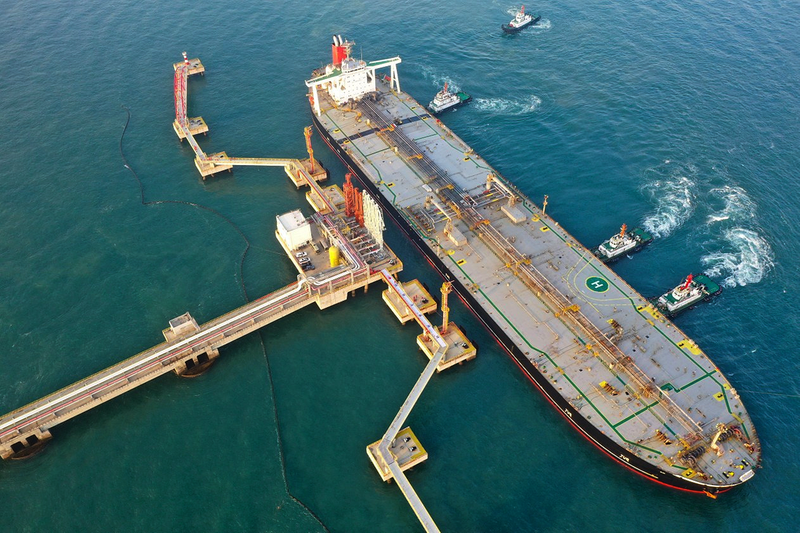 2025年12月18日,一艘装载着17.9万吨石化原辅料的船舶泊入国投洋浦油储码头30万吨级原油泊位(无人机照片)。