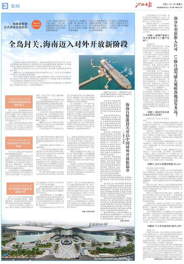 “对自动驾驶车辆而言,车速越高,运行安全风险相应增加,对驾驶自动化系统的性能和安全性要求也更为严苛。”刘法旺表示,此举旨在以“小切口”稳妥起步,通过限定场景下的实践突破,逐步推动技术优化与迭代,积累行业实证经验,最终实现自动驾驶技术安全、有序、扎实的落地应用。