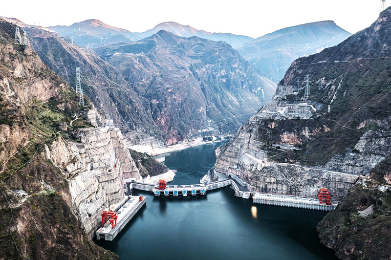 白鹤滩水电站、乌东德水电站位于云南省、四川省交界的金沙江河道上,是实施“西电东送”的国家重大工程。白鹤滩水电站是世界第二大水电站,总装机容量1600万千瓦。乌东德水电站是世界第七大水电站,总装机容量1020万千瓦。乌东德、白鹤滩与溪洛渡、向家坝、三峡、葛洲坝六座梯级水电站共同组成世界最大清洁能源走廊,持续赋能我国经济社会绿色发展。 新华社记者 王冠森 摄