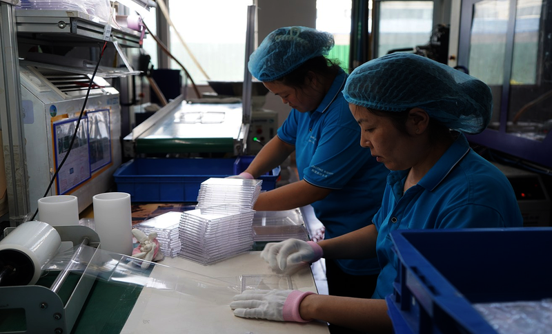 工人在江苏机器时代文化创意有限公司生产车间作业(7月23日摄)。新华社发(刘臻睿 摄)