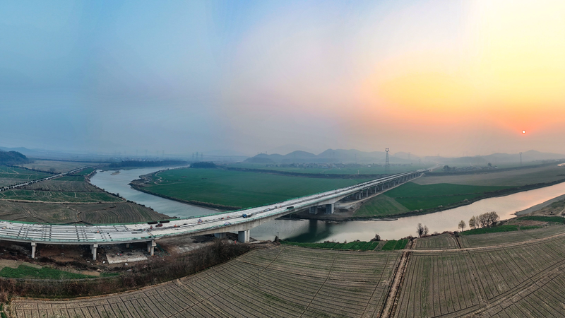 G236殷汇至查桥段一级公路改建工程是池州市交通基础设施重点项目,概算投资35.1亿元,起于贵池区殷汇镇,终点位于东至县尧渡镇查桥村,全长48.115公里,按双向四车道一级公路标准建设,设计时速80公里。工程于2024年3月开工,目前全线路基成型38公里。“张溪大桥全长982米,此次预制梁板架设完成,标志着桥梁主体结构顺利完工。根据施工计划,预计2026年4月份可完成整座桥梁施工,为全线贯通奠定基础。”工程04标段项目现场负责人胡海林介绍。该工程全线建成后,将实现池州市区到东至县城全程90公里一级公路贯通,相比原来道路可节约通行时间20分钟。